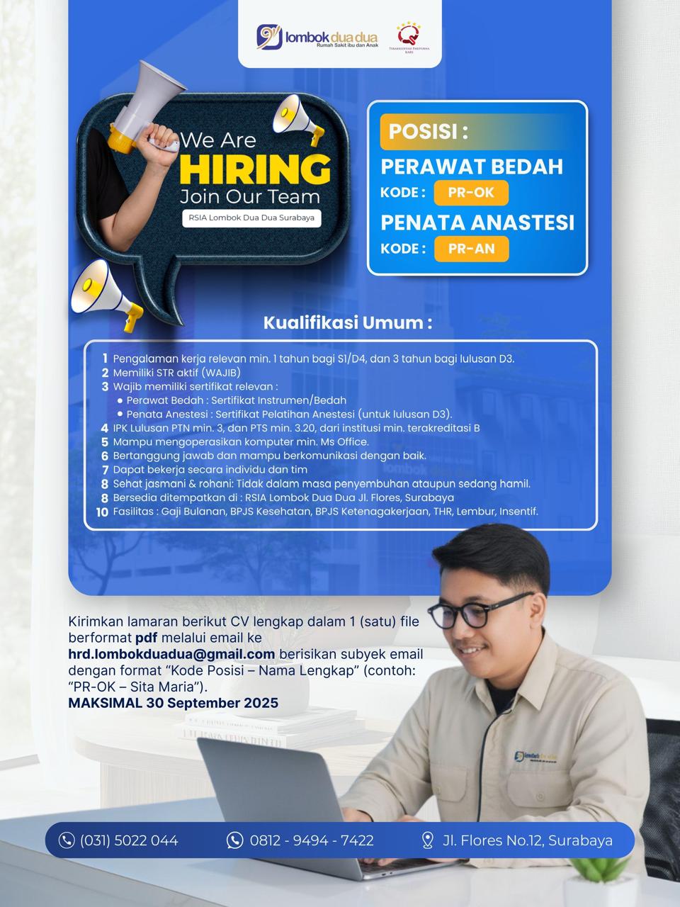 Mewujudkan RSIA Lombok Dua Dua Surabaya menjadi rumah sakit yang mengutamakan mutu pelayanan dan keselamatan dengan sentuhan kasih sayang dalam suasana kekeluargaan